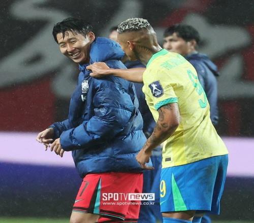 孙兴慜今年夏窗离开了热刺,加盟了美职联的洛杉矶队,而里沙利松目前依旧效力于热刺。