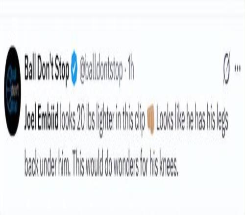 美媒:感觉恩比德减重了20磅,他的双腿变得很有力量,这对于减轻膝盖的压力很有效。