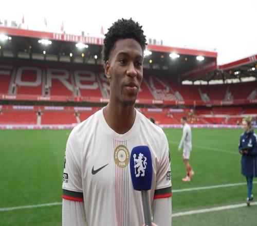 2025-10-19英超联赛第8轮,切尔西客场3-0战胜诺丁汉森林。赛后,本场比赛打入一粒进球的乔希-阿昌庞接受了切尔西官方的采...