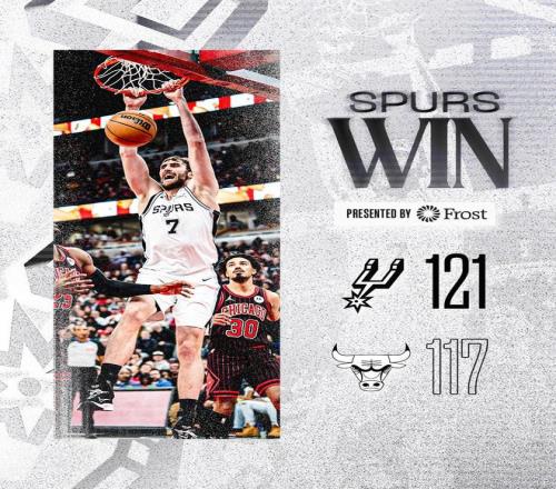 许尔特外线命中,为芝加哥稳住局面,卡斯尔打板得分,琼斯跳投打进,卡斯尔助攻科内特暴扣还以颜色。武切维奇连续单打不中,福克斯外线不进,卡斯尔抢断,随后2罚全中。比赛进入白热化阶段,琼斯抛投得分,卡斯尔被封盖,科内特2罚全中。道苏姆轰进远投,卡斯尔助攻科内特空接暴扣予以回应。道苏姆单打不进,文班亚马轰进追身远投,马刺追平比分。文班亚马大帽琼斯,随后单打命中三分球,距离终场仅剩27秒,公牛队请求暂停。