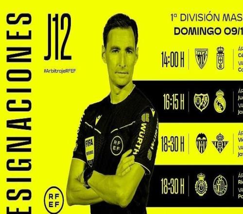 西班牙足协官方公布了周日西甲5场比赛的裁判名单,胡安-马丁内斯将执法巴列卡诺vs皇马,哈维尔-阿尔韦罗拉将执...